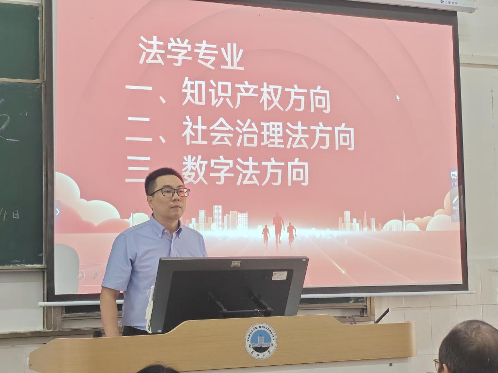 随后,jdb电子中国官方网站本科生教学副院长杨春磊聚焦本科生人才培养方案展开深入解读。他重点介绍了法学专业下设的知识产权、社会治理法、数字法三大特色培养方向,从课程体系构建、实践教学安排、学术资源支撑等方面进行详细阐释,尤其强调了英语四六级考试对学业发展与未来就业的重要性。