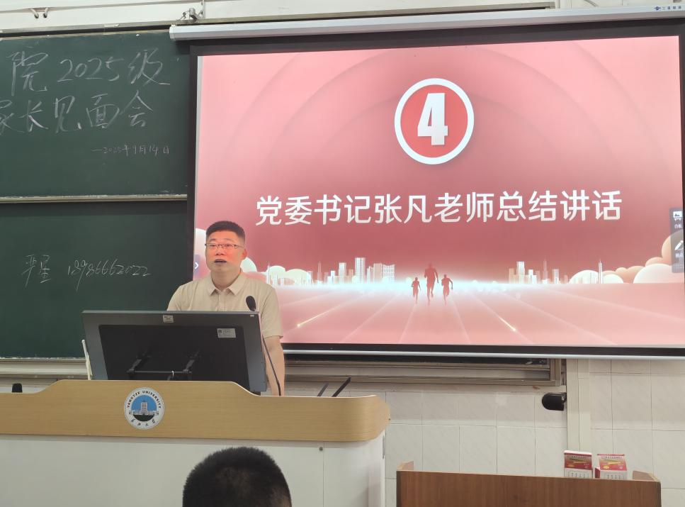 (通讯员 李玉豪)9月14日下午,jdb电子中国官方网站2025级新生家长见面会在西校区2教T1隆重举行,会议由党委副书记严星主持,jdb电子中国官方网站党委书记张凡、院长李华成、副院长唐飞、副院长杨春磊及2025级新生辅导员、班主任、家长出席会议。