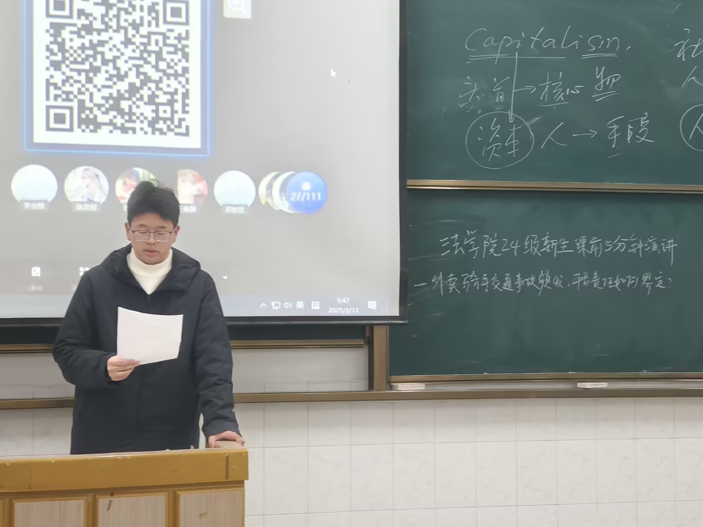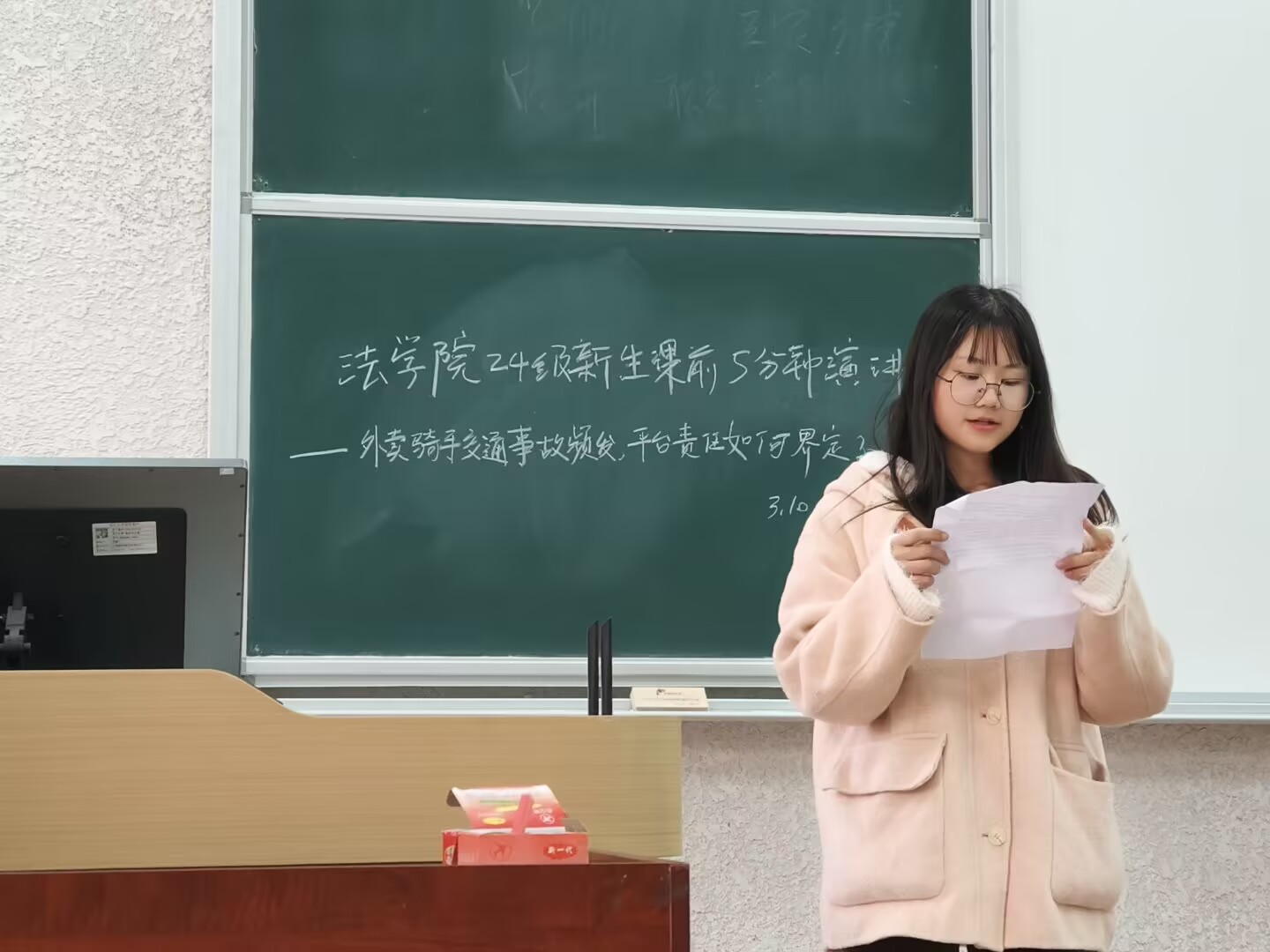 (通讯员李剑)3月10日至14日,jdb电子中国官方网站在春季学期第四周开展了课前5分钟演讲活动,本次活动聚焦 “外卖骑手交通事故频发,平台责任如何界定?”这一热点话题,旨在引导jdb电子中国官方网站学子运用专业知识,深入思考社会现实问题,提升法律分析能力。