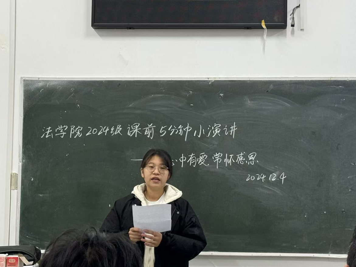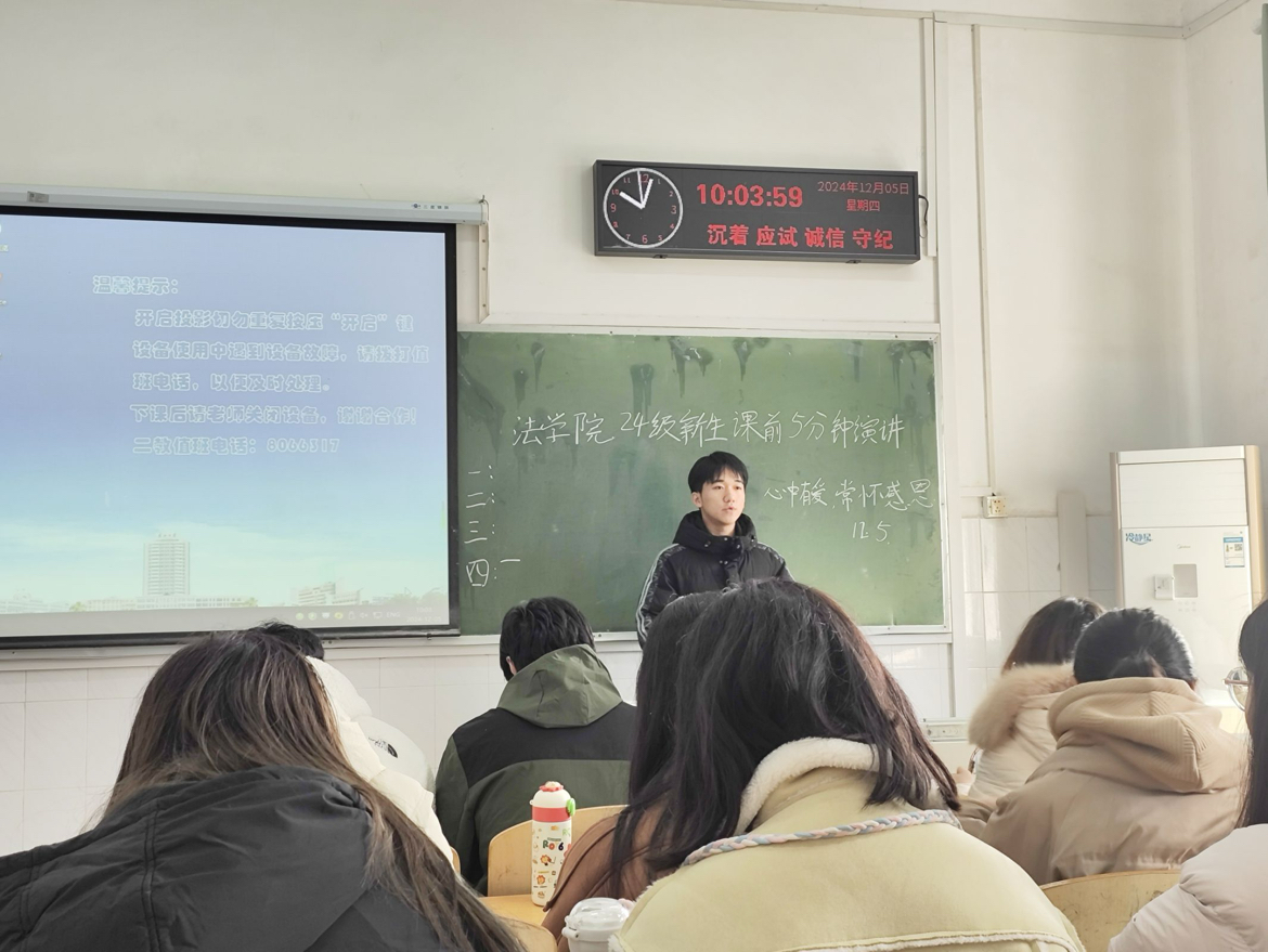 2024年12月2日至7日,jdb电子中国官方网站迎来了一场别开生面的活动——2024级新生“心中有爱,常怀感恩”课前五分钟演讲。此次活动不仅为新生们提供了一个展示自我、抒发情感的舞台,更是一次深刻的心灵洗礼和价值观的塑造之旅。