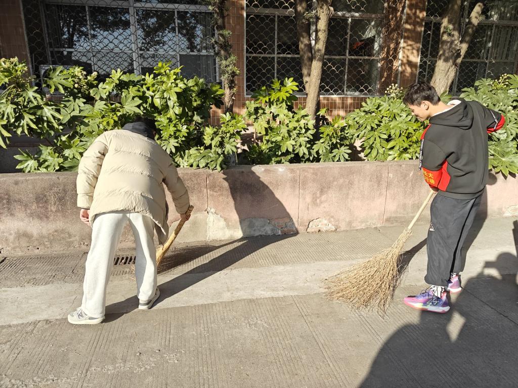 活动当天,同学们手持各式各样的清洁工具,分赴各自的责任区域,以饱满的热情投入到劳动之中。他们或弯腰捡拾落叶,或挥锄铲除杂草,或细心清理被随意丢弃的烟蒂与纸屑,每一个动作都透露出对校园环境美化的执着追求。汗水在他们的额头上晶莹闪烁,如同以辛勤为墨,以热情为笔,共同绘制着一幅幅生动绚丽的校园风景画,让校园的每一个角落都焕发出了勃勃生机。