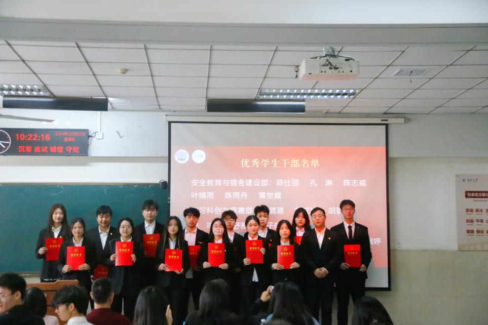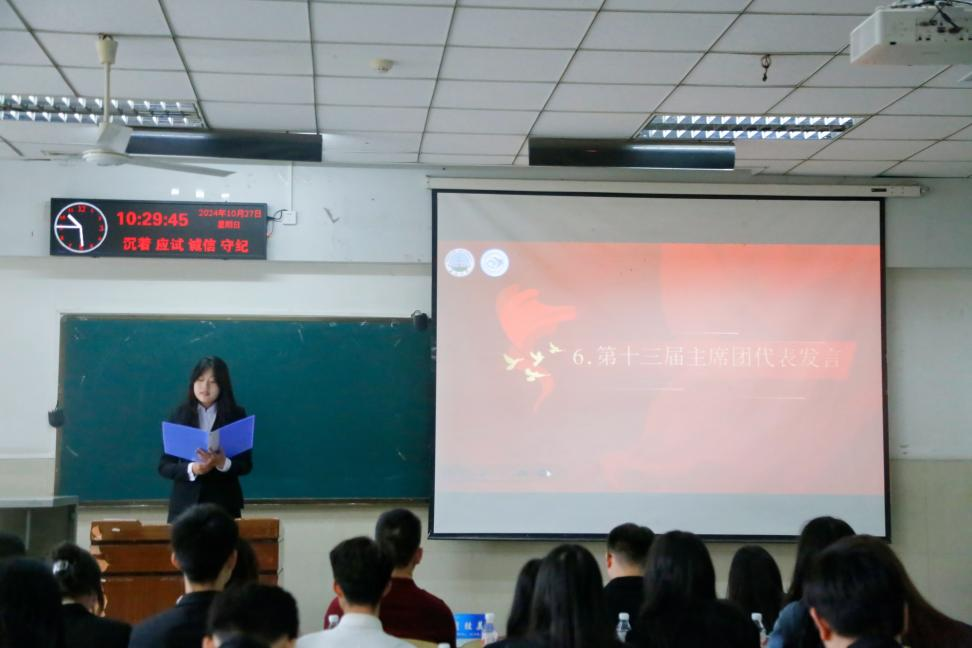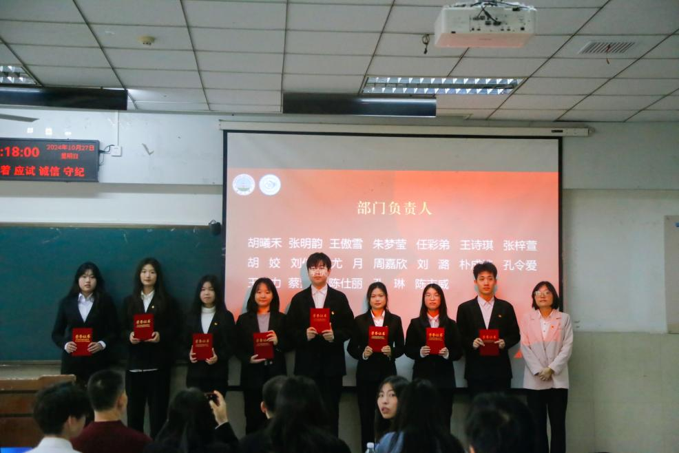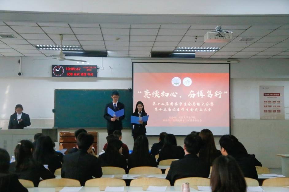 (通讯员李玉豪/文 杨雅淇/摄)2024年10月27日上午,jdb电子中国官方网站于东校区12教102成功举办第十二届团委学生会总结大会暨第十三届团委学生会成立大会。jdb电子中国官方网站党委书记周胜美,副书记严星,辅导员盛文军、雷礼、吴敏出席会议,第十二届、第十三届团委学生会全体成员共同参会。