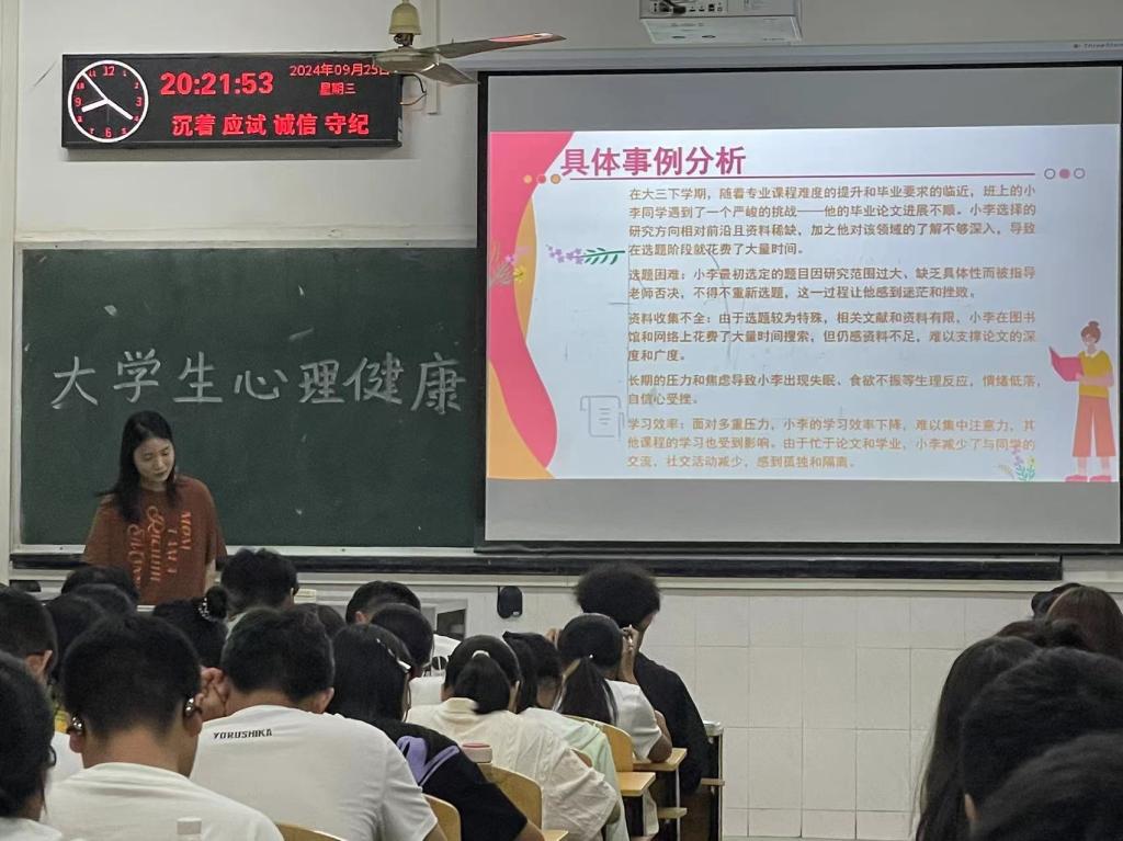 为帮助2024级新生尽早融入大学生活,掌握基本的心理健康知识,树立科学的心理健康观念。2024年9月25-27日,jdb电子中国官方网站以班级为单位组织开展了2024级本科生新生心理主题班会,新生辅导员、班主任及全体新生参会。