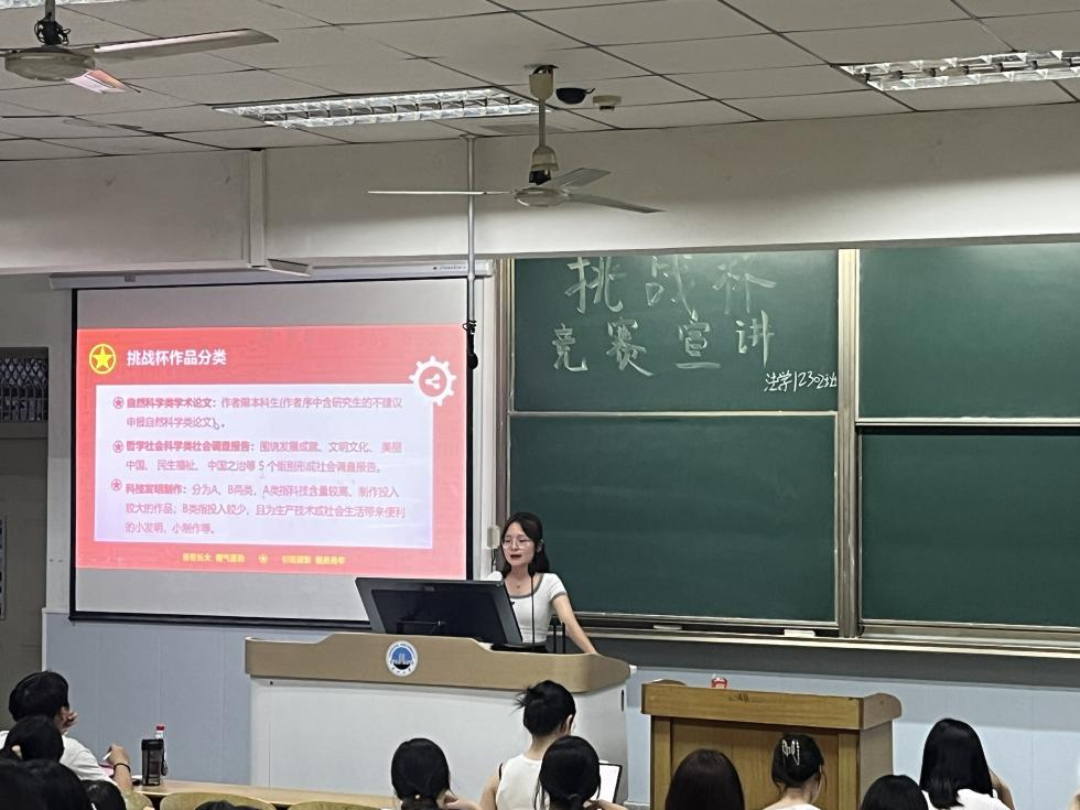 近日,jdb电子中国官方网站积极响应学校“挑战杯”大学生课外学术科技作品竞赛(简称“大挑”)的号召,决定在各班级自主开展“大挑”宣讲活动。此次宣讲旨在激发学生的创新热情,提升学术素养,引导学生积极参与这一被誉为中国大学生科技创新创业“奥林匹克”盛会的全国竞赛。