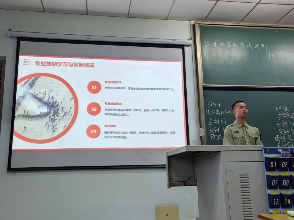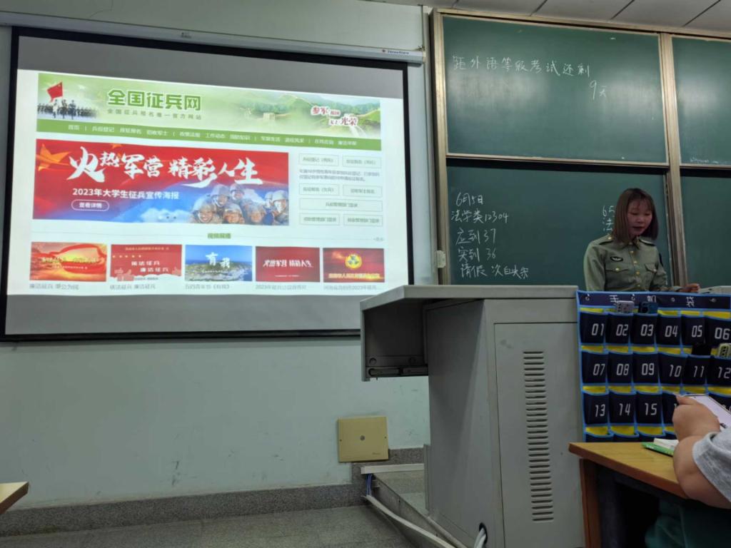 (通讯员 张屾岚/文 何梦秋/图)为了向青年学子普及征兵政策,动员同学们积极投身国防事业,2024年6月5日,jdb电子中国官方网站在东校区13教404教室举办征兵入伍宣讲会。