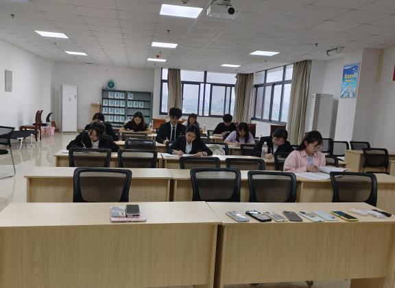在理论知识竞赛环节,采用闭卷答题的形式,比赛内容涵盖多个方面的知识,充分考验了团干部们的理论素养和应变能力。比赛过程中,团干部们全神贯注,认真作答,展现了丰富的知识储备和扎实的政治理论功底。评委们根据选手的表现,从多方面进行综合评定,最终周艳同学脱颖而出,将代表学院参加校赛。