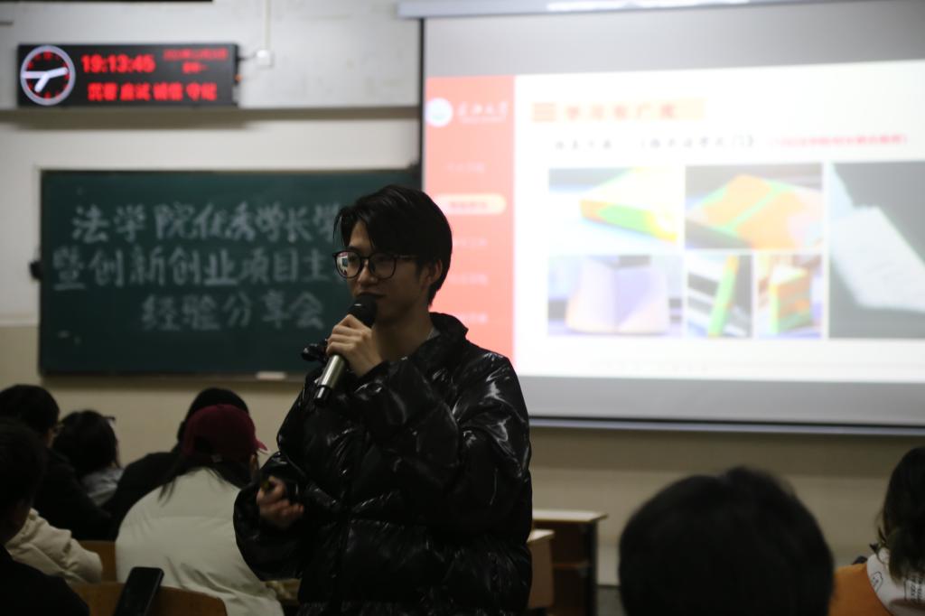 随后,骆语杰学长用幽默的语言将自己的学习和求职过程中的反思总结倾囊相授,分别从实习经验、法考经验、大学经验向大家进行讲述。通过梳理考研、法考、考公的关系,对同学们的未来规划进行指导,传授给同学们一些实用的大学经验,趣味横生,反响热烈。