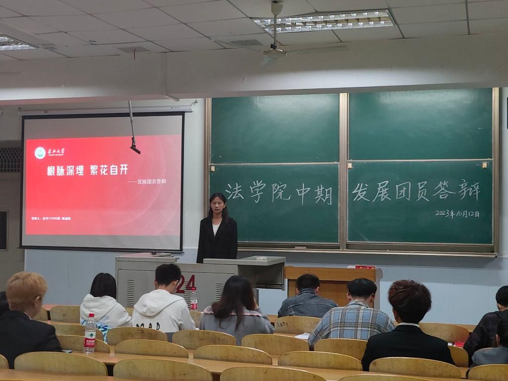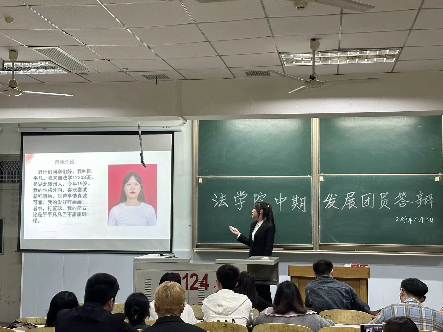 (通讯员欧阳文悦)为切实加强基层团组织建设,规范团员发展流程,保证新发展团员质量,2023年10月12日18时,jdb电子中国官方网站在13教D区124教室开展了2023年中期发展团员答辩活动。院团委书记雷礼老师、辅导员吴敏老师、jdb电子中国官方网站第十二届团委学生会主席团以及各位答辩同学参加。