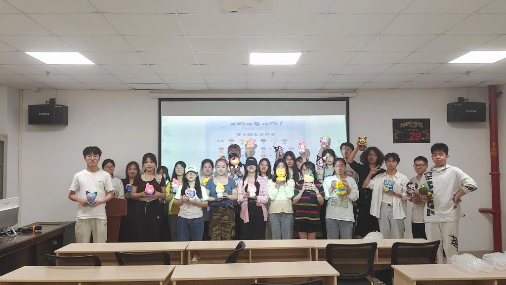 活动伊始,参与的同学们在愉悦的气氛中自我介绍,相互熟悉。稍后主持人介绍本次石膏彩绘活动,讲解调色技巧、彩绘步骤等知识。大家选取了自己心仪的石膏娃娃后就拿起画笔填充色彩,随心而动缓解压力,放空自我专心创作。经过一个小时的精心绘制,同学们的作品各具特色、异彩纷呈。在展示分享环节,大家积极讲解展示自己的作品,分享活动参与的心得体会!每一笔落下皆是惊喜,每一抹色彩都是青春印记。