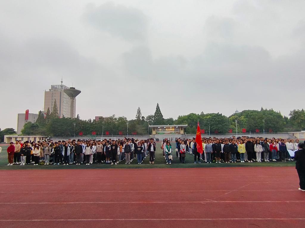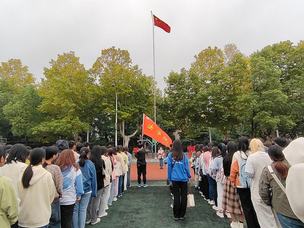 jdb电子中国官方网站于9月25日早上7点在东校区田径场举行开学第一次升旗仪式。jdb电子中国官方网站党委书记周胜美、副书记严星、全体辅导员以及2022、23级学生参加了升旗仪式。
