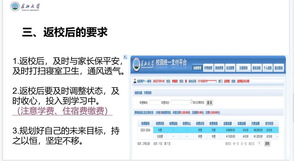 最后,主持人强调,学生返校前要与家人报备自己的行程,返校后要将寝室及时清理并通风透气,注意寝室卫生,保障自身健康。开启新一学年的大学学习生活。