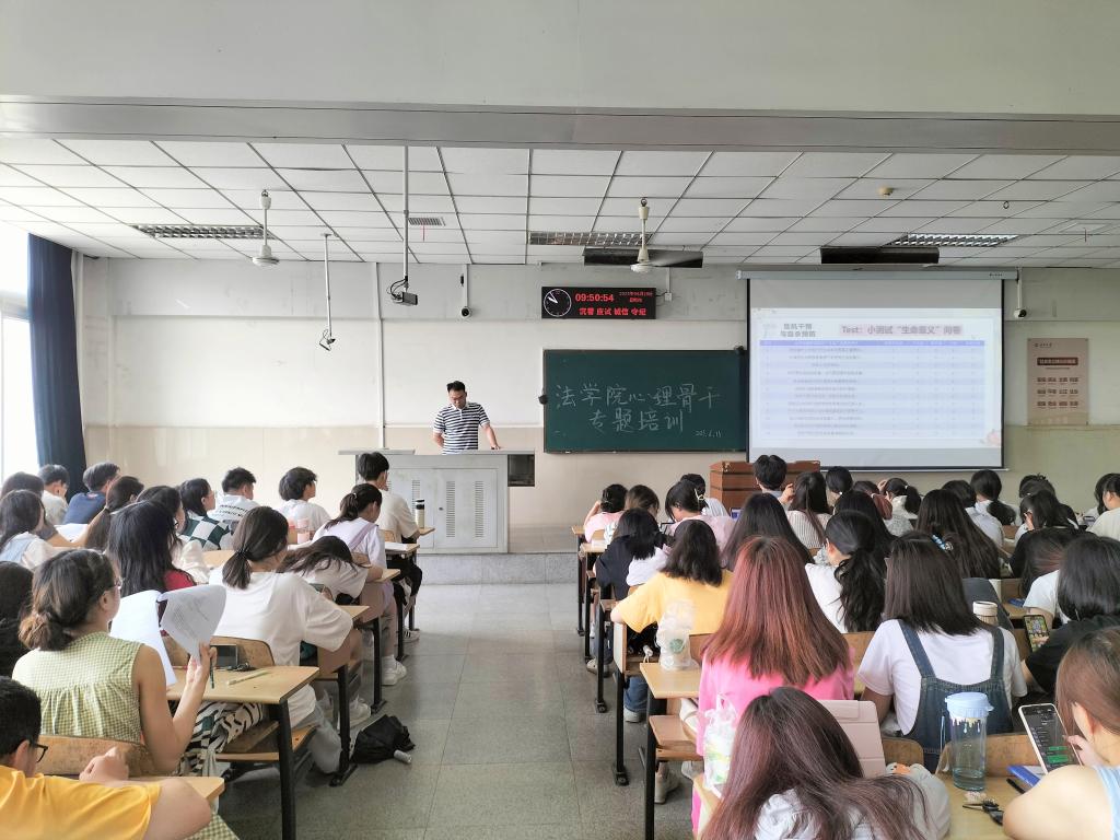 (通讯员 张梓萱)为更好推进大学生心理健康教育工作,提高学生骨干解决心理健康问题和服务同学的能力,jdb电子中国官方网站于6月15日在12教202教室开展学生心理骨干培训。本次培训会由jdb电子中国官方网站辅导员雷礼主讲,jdb电子中国官方网站本科生及研究生各班骨干参与。