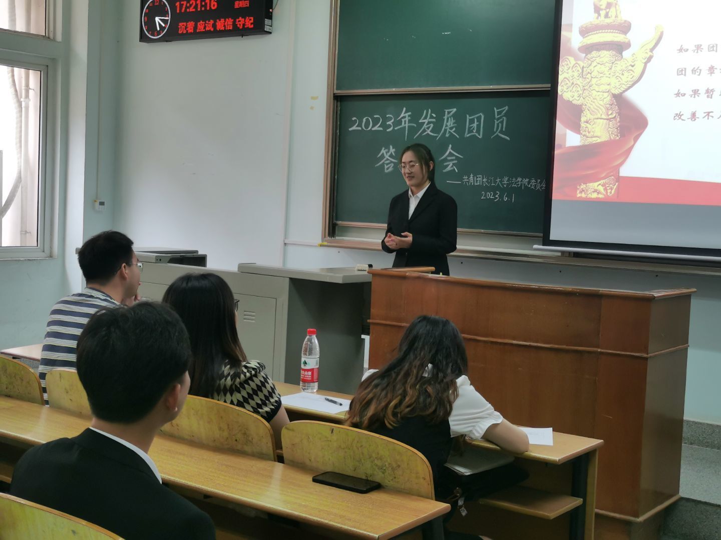 (通讯员张明韵)6月1日下午,在13-C-117教室,jdb电子中国官方网站举行了2023年度新发展团员答辩会,院团委书记雷礼老师以及兼职辅导员邓明慧老师、任豆豆老师担任评委。