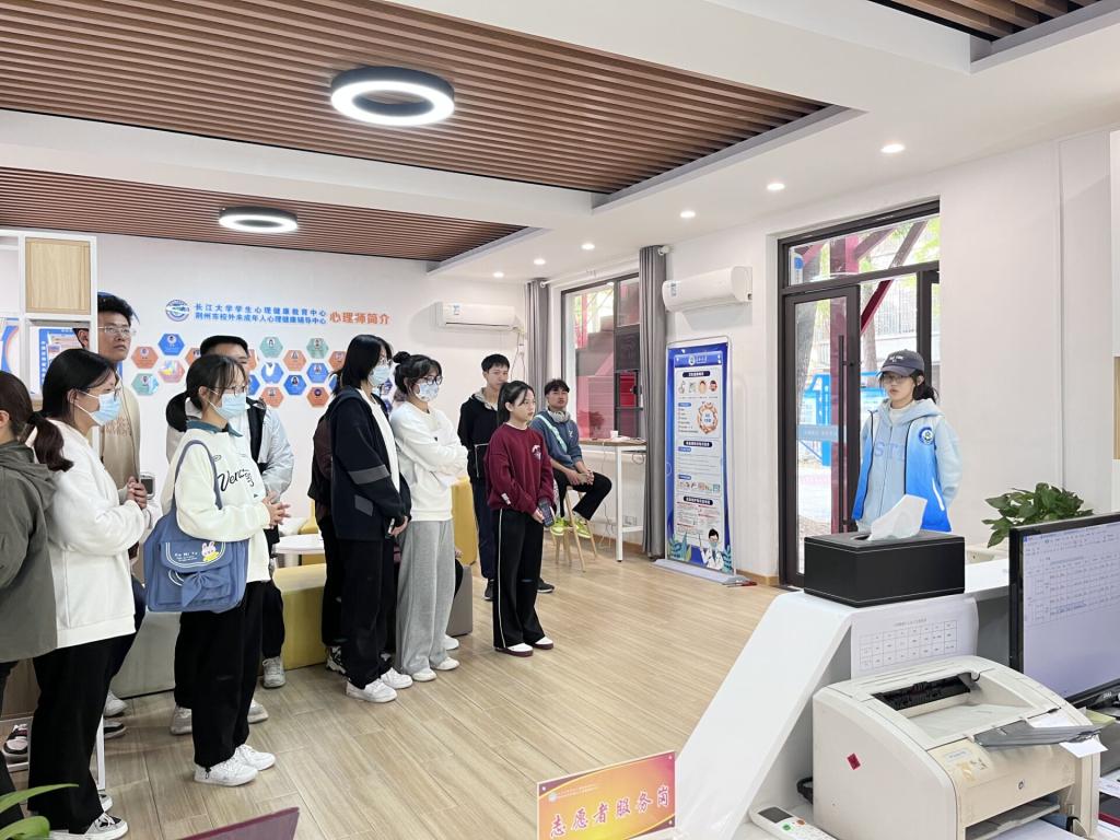 活动伊始,讲解员向同学们介绍了学校心理健康教育中心基本情况及其下设的蒲公英之家和素质拓展教练队两个组织,带领同学们熟悉了中心的“接待室”,并希望心理骨干们能向大家积极传达:勇敢的求助是强者的行为!