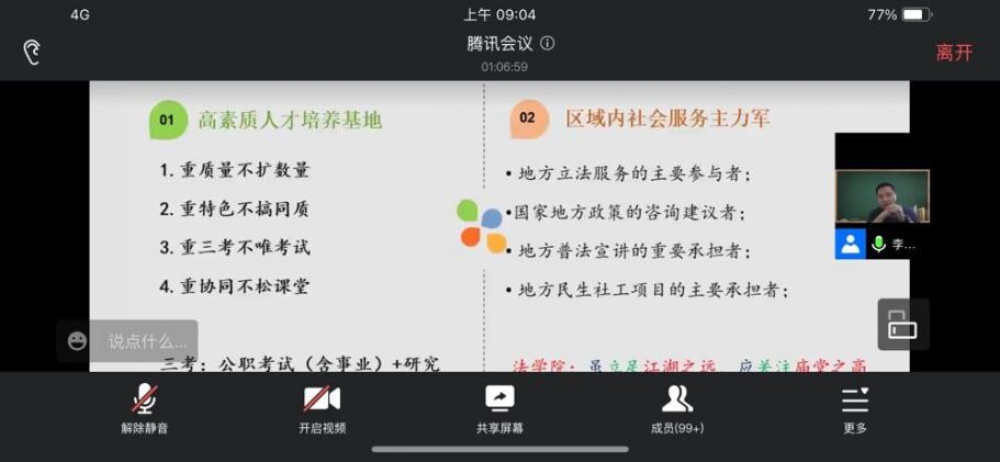 学会认知自我能力,培养大学生涯规划。9月7日下午,jdb电子中国官方网站开展“法科生学业和职业生涯规划”主题校友交流分享讲座,本次讲座邀请校友余飞老师主讲,在此次分享交流会上,余飞老师希望大家脚踏实地,帮助新生正确认知自我;也鼓励大家仰望星空,引导大家对未来工作世界进行思考和探索,同时帮助树立正确生涯规划理念,培养学生生涯规划的能力。同学们纷纷表示这次讲座让自己对于大学学业了解、未来职业思考等方面意义重大,感觉收获颇丰。