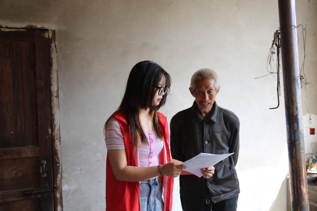 在走访工作前,jdb电子中国官方网站暑期普法实践队14名师生志愿者分成2个小组分别开展工作。志愿者到每一户村民家中,面对面、心贴心地与他们交流,询问他们家庭生产生活状况、对法律以及对政府扶贫等相关政策的了解程度,并鼓励村民在日常生活中需要增强法治意识,学法懂法,学会用法律的武器维护自己的合法权益。