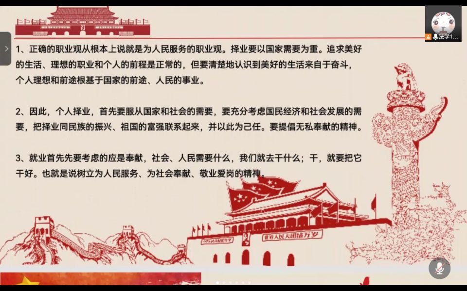 (通讯员 徐文健)法学11802班于12月5日通过腾讯会议开展了12月班团会暨就业主题教育会,以“学习全会精神 践行初心使命”与“成长观、职业观、就业观”为主题,团员许馨予主持会议。