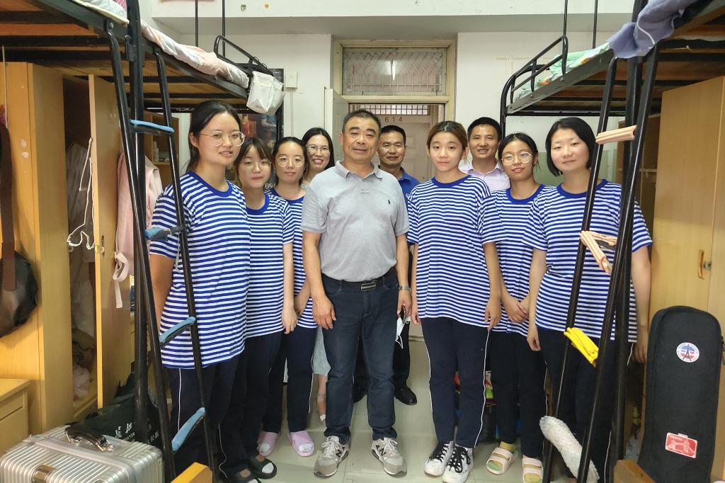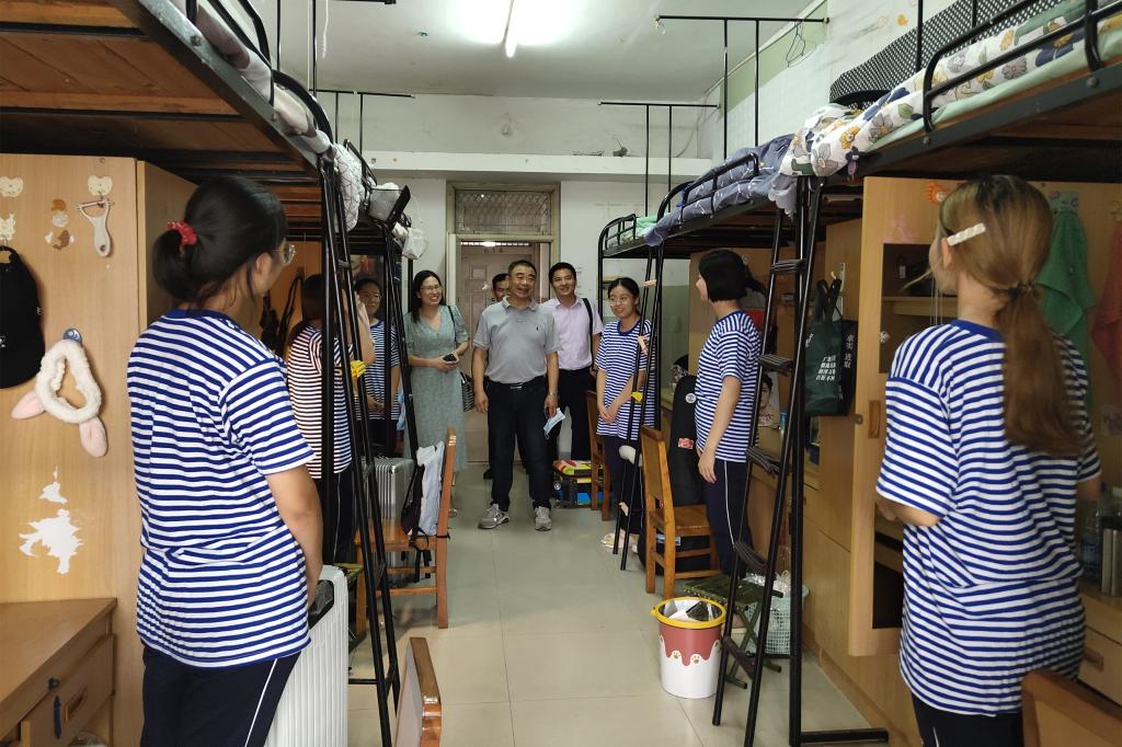 9月6日中午12时,副校长周从标在学院党委书记周胜美、院长李华成、副书记胡红霞及辅导员周晓峰的陪同下,深入我院2021级新生寝室看望同学们。