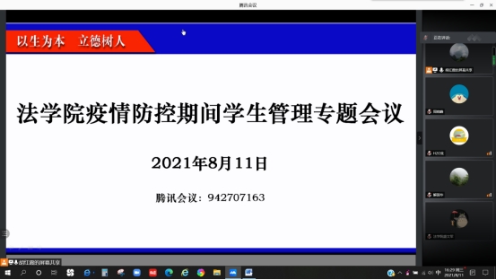 8月11日,jdb电子中国官方网站在腾讯会议召开班主任、辅导员会议,传达了学校新冠肺炎疫情防控工作政策和相关会议精神,布置了jdb电子中国官方网站疫情防控期间学生管理工作,会议由学院党委副书记胡红霞主持,全院班主任、辅导员参加。
