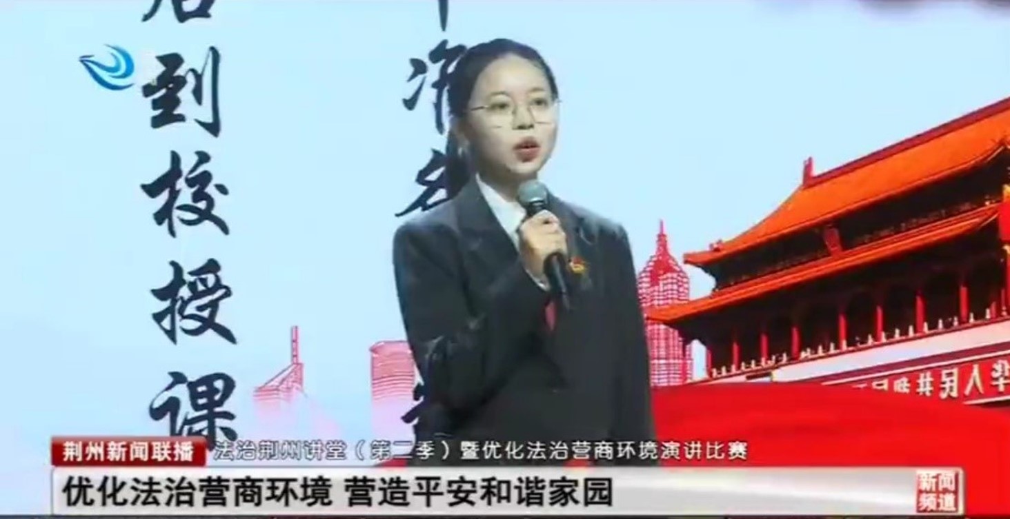 本次演讲比赛有来自荆州市检察院、沙市区法院、江陵县公安局、共青团荆州市委和jdb电子中国官方网站等单位的11名主讲人参赛。徐程同学在《传承法治精神,奉献青春力量》主题演讲中展示了我院在深化平安法治荆州建设,服务和优化荆州法治营商环境中所做的积极工作;她宣传了我院党员教师胡承武、唐飞等的先进事迹,还讲述了我院学子在普法志愿服务等方面的青春故事。