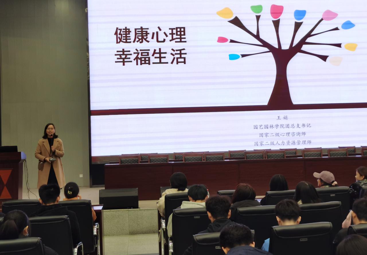 【通讯员 吴诚】12月1日晚七点,jdb电子中国官方网站联合化工学院在西校区农科大楼1058报告厅举办“大学生心理健康教育”讲座,由园林园艺学院分团委书记、国家二级心理咨询师王娟老师主讲。jdb电子中国官方网站辅导员周晓峰和全体大一学生参加讲座。