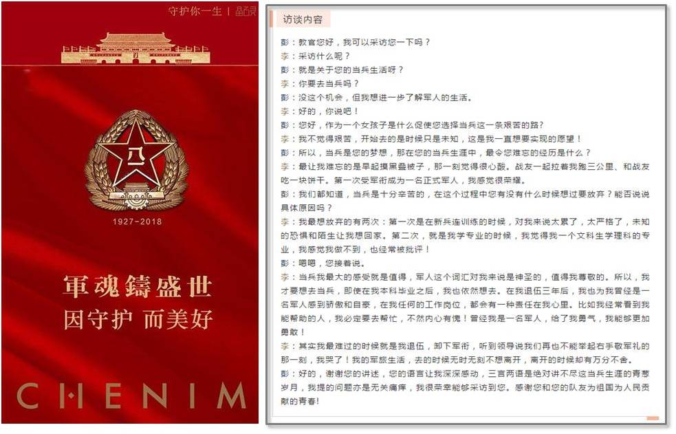 图为志愿者访谈毕业于jdb电子中国官方网站的优秀士兵,共述军旅生活。