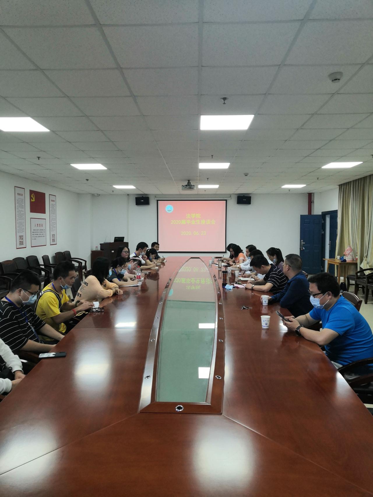 (通讯员:王怡然)6月23日晚7时,为jdb电子中国官方网站今后更好的发展,jdb电子中国官方网站在文科大楼会议室召开2020级毕业生座谈会,院领导周胜美、李华成、彭泽君以及陈群辉、陈欢、朱帅、杨琳丽等老师代表及在校毕业生参加了座谈会。会议由党委副书记胡红霞主持。