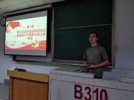 团会伊始,主持人带领大家回顾了五四运动的具体内容,包括其历史背景、事件过程和历史影响。在场同学认真聆听并备受感染。随后,几位同学发表了自己对五四精神的理解,大家畅所欲言,纷纷提出自己对五四精神的理解,精彩的发言赢得阵阵掌声。激烈的讨论加深了同学们对五四精神的理解。接着,主持人对五四精神做出了相应的总结,使同学们了解到五四精神是不仅是一种爱国精神,也是一种为正义而战的精神。与此同时,主持人还为同学们播放习近平在纪念五四运动100周年大会上讲话的相关视频,同学们认真观看。最后主持人结合视频中的内容,详细讲解了习近平同志提出的对当代青年的希望,同学们听完后,感触很深,深刻地认识到自己作为当代青年的重大责任,并表示要将五四精神的精神发扬光大。