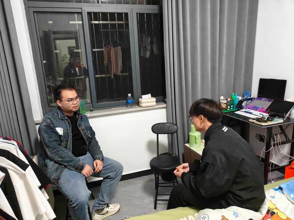 随后,雷礼老师抵达宋佳伟家。交流中发现,宋佳伟因“考研冲刺” 与 “求职准备” 两难,加之家境压力,情绪焦虑。辅导员结合社会工作就业趋势与其学习基础,分析两条道路适配性,建议其依职业规划理性决策,同时分享心理调节方法,鼓励道:“无论选哪条路,学院都是你后盾。” 一番疏导让宋佳伟平复心绪,明确先专注求职,后续会及时沟通进展。