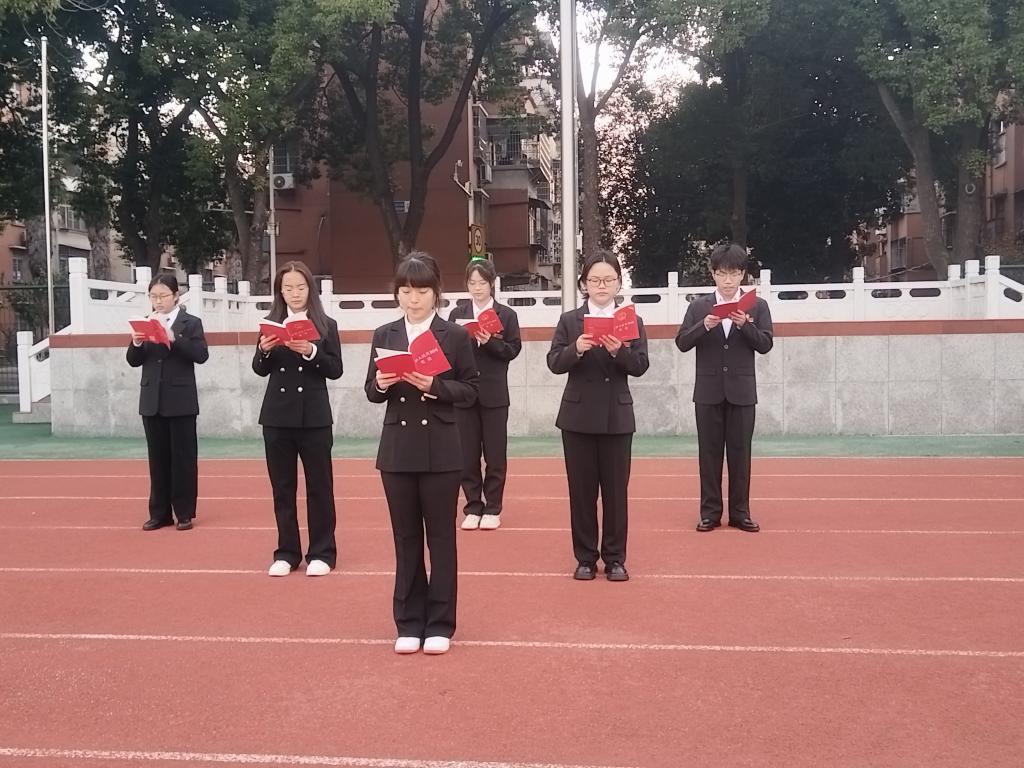 倡议声毕,在学生代表的带领下,全体成员高举右拳,庄严朗诵宪法誓词:“忠于中华人民共和国宪法,维护宪法权威,履行法定职责……”铿锵有力的誓言响彻校园上空,字字千钧,既彰显了同学们尊法学法、守法用法的坚定信念,更传递出新时代青年砥砺奋进、勇担使命的决心。