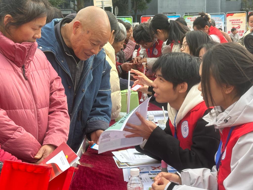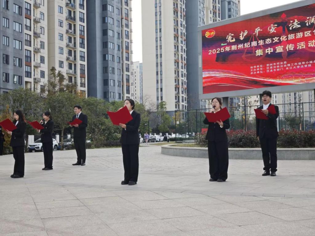 (通讯员 胡兴烽)12 月 3 日下午,jdb电子中国官方网站、民革jdb电子中国官方网站总支联合纪南文旅区直各部门,在凤凰城广场开展 “法治护航,平安相随” 普法进社区活动。荆州市青年普法志愿者讲师团的陈燕、杨琳丽两位老师、jdb电子中国官方网站团委书记吴敏带领 39 名志愿者,通过趣味互动与沉浸式体验,为中老年居民送上实用法律 “大餐”,筑牢社区安全法治防线。
