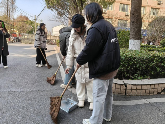劳动现场,同学们以小组为单位迅速行动,分工协作有条不紊。对责任区域进行了全方位的卫生打扫。劳动过程中,同学们不惧寒风,相互配合,有的负责地面清扫,有的专注高处清洁,有的进行垃圾分类,用实际行动诠释劳动之美。