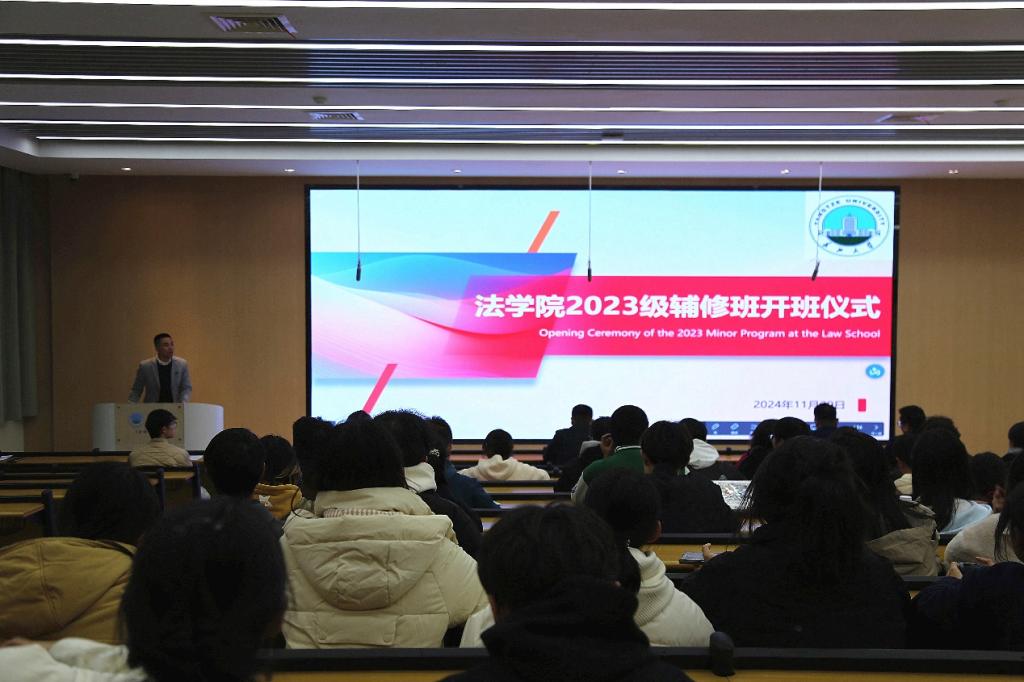 (通讯员解凌逍/摄 邹妮彤/文)2024年11月29日晚19:00,jdb电子中国官方网站 2023 级辅修班开班仪式在东校区16教A109教室成功举办。此次开班仪式备受瞩目,学院领导、教师代表、辅修校友代表以及2023级辅修班59名同学齐聚一堂,共同探讨复合型法律人才的培养思路。