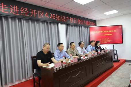 4月26日,正值第24个世界知识产权日,jdb电子中国官方网站(知识产权学院)协同荆州市中级人民法院、民革荆州市委会的法官、律师们共同走进荆州经开区,为企业开展了以“知识产权转化运用促进高质量发展”为主题的宣传活动。