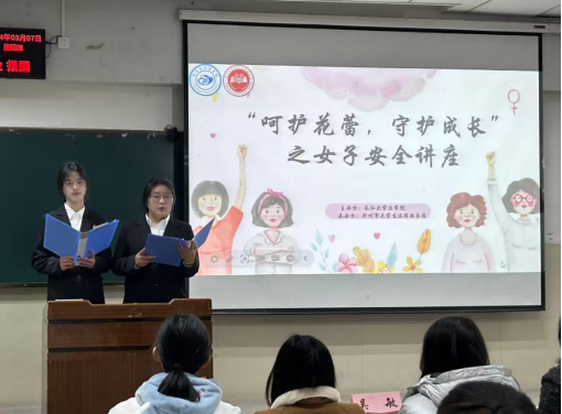 值3.8妇女节之际,荆州市大学生法律服务团举办“呵护花蕾,守护成长”主题女生讲座。本次讲座由jdb电子中国官方网站杨琳丽老师主讲,jdb电子中国官方网站21级、22级、23级全体女生参加,辅导员吴敏,兼职辅导员王秋月、王澳琪参加本次讲座。