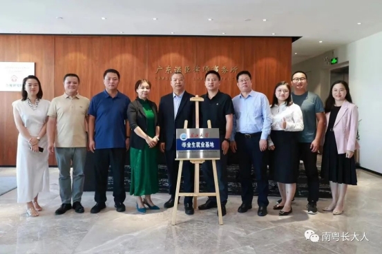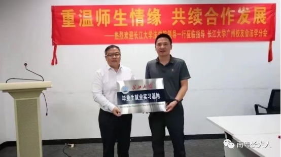 次日,李华成、尹家经带队来到法学10级刘芳校友所在的广东诺臣律师事务所(以下简称“诺臣所”),举办联合共建毕业生就业基地签约授牌仪式。本次活动由诺臣所一级合伙人刘芳校友主持。