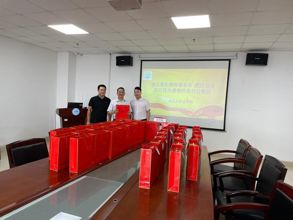 9月17日,为庆祝教师节和中秋节,湖北楚拓律师事务所、武汉众合的部分校友回校感谢师恩,为jdb电子中国官方网站教师送上节日祝福。