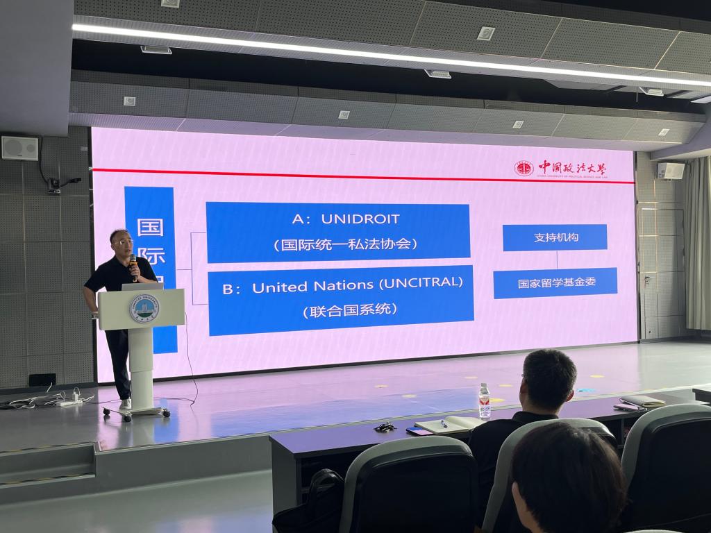 随后,李博士重点围绕两大国际组织展开系统讲解。在介绍国际统一私法协会(UNIDROIT)时,他详细解析了该组织的职能定位、业务范围以及实习岗位的能力要求与工作特点,并现场演示官方网站的核心板块,帮助同学们直观了解国际组织的实际运作,有效打破了信息壁垒。