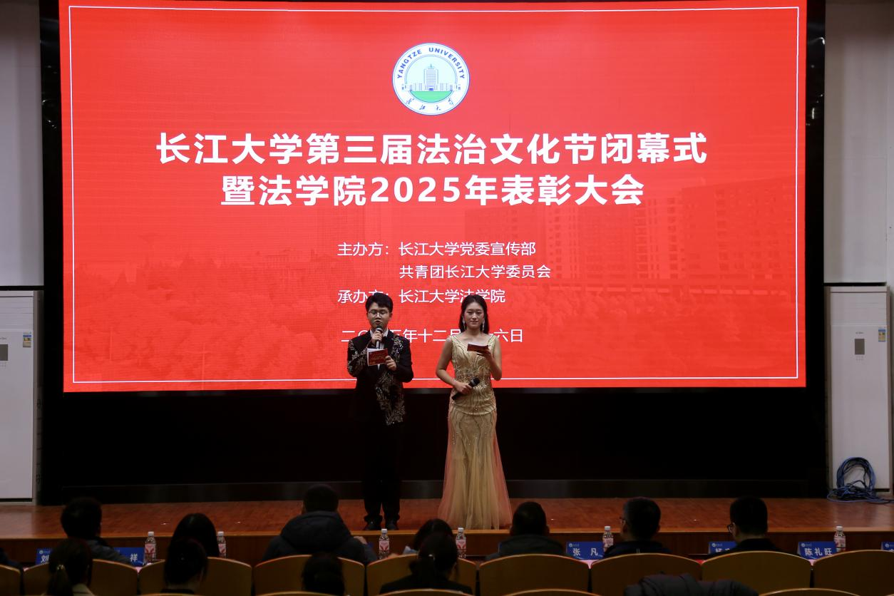 (通讯员文/李玉豪 图/何梦秋 杨翔茹 杨欣瑶 黄淇琪)“法治不是课本上的冰冷法条,是三年里我们用脚步丈量的责任,用热爱坚守的信仰!”2025 年 12 月 26 日晚,jdb电子中国官方网站东校区 12 教 405 报告厅内掌声雷动,第三届法治文化节闭幕式暨jdb电子中国官方网站 2025 年表彰大会正式启幕。党委宣传部副部长汤慧珍、校团委副书记信晓阳与jdb电子中国官方网站全体师生齐聚一堂,共同见证这场青春与法治交融的盛会,大会由周清鄂、袁野联袂主持。