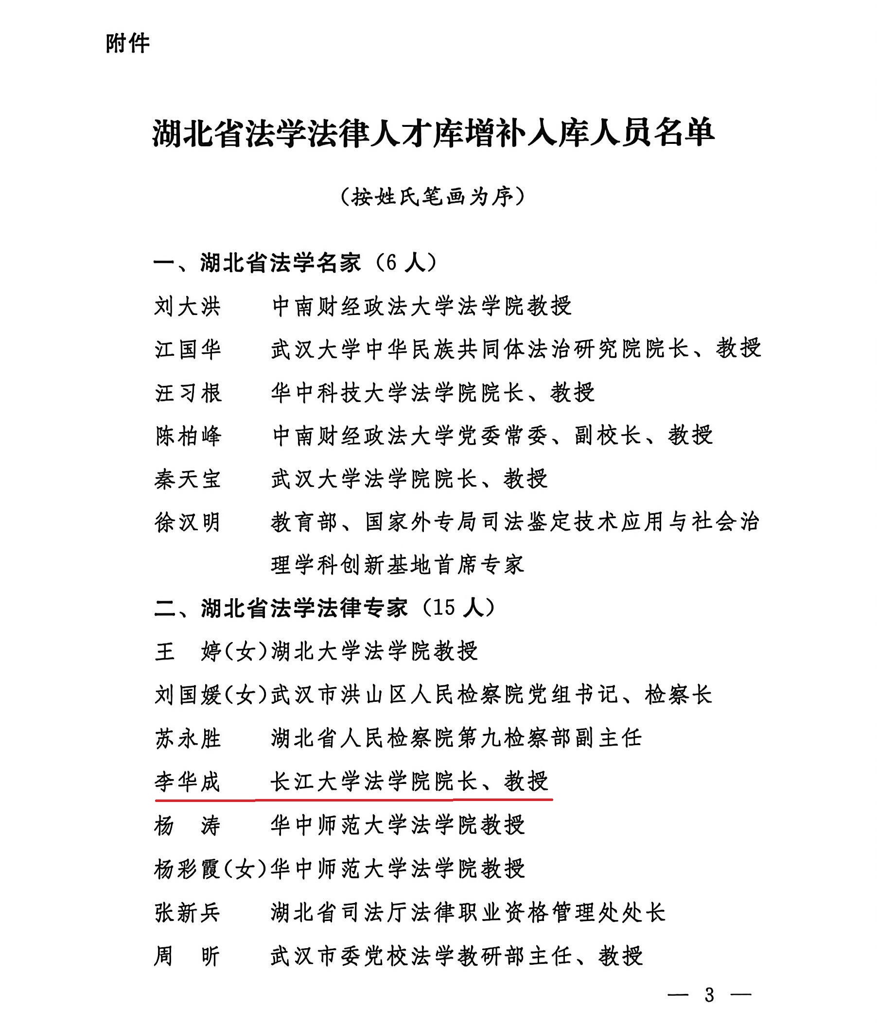 据悉,湖北省法学法律人才库是全省法学法律领域高层次人才的集中展示与权威评价平台,旨在遴选和表彰在法学理论研究、法治实践创新等方面作出重要贡献的领军人才与优秀青年人才。(审核 张凡 编辑 雷礼)