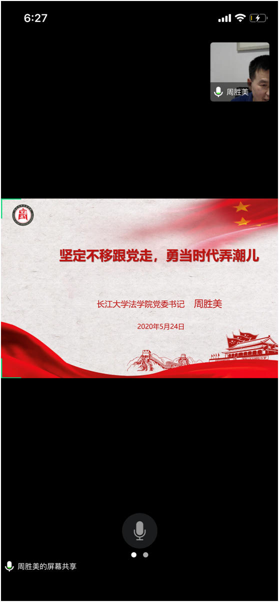 (通讯员 田博文)5月24日晚上7时,jdb电子中国官方网站开展以“坚定不移跟党走,勇当时代弄潮儿”为主题的入党积极分子线上培训课程,由党委书记周胜美授课,jdb电子中国官方网站2020年上半年61名入党积极分子参与,党委副书记胡红霞、学生支部书记杨琳丽参加会议。