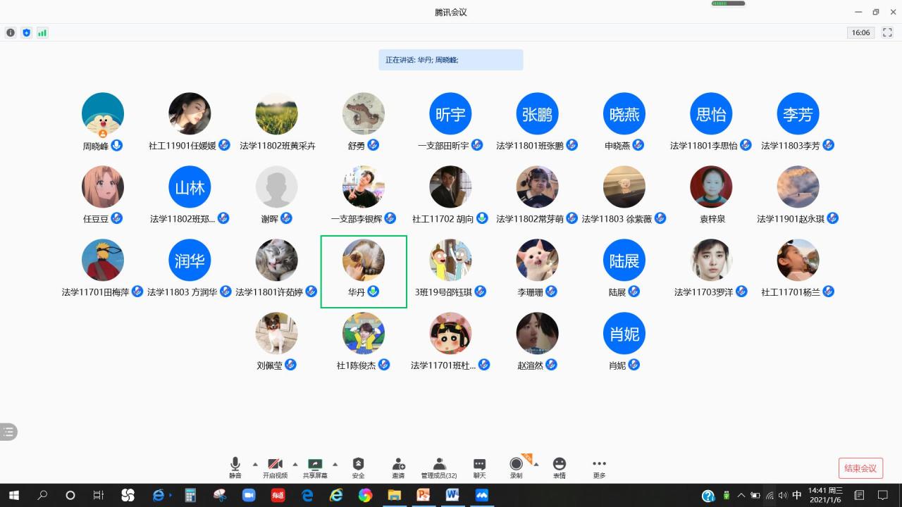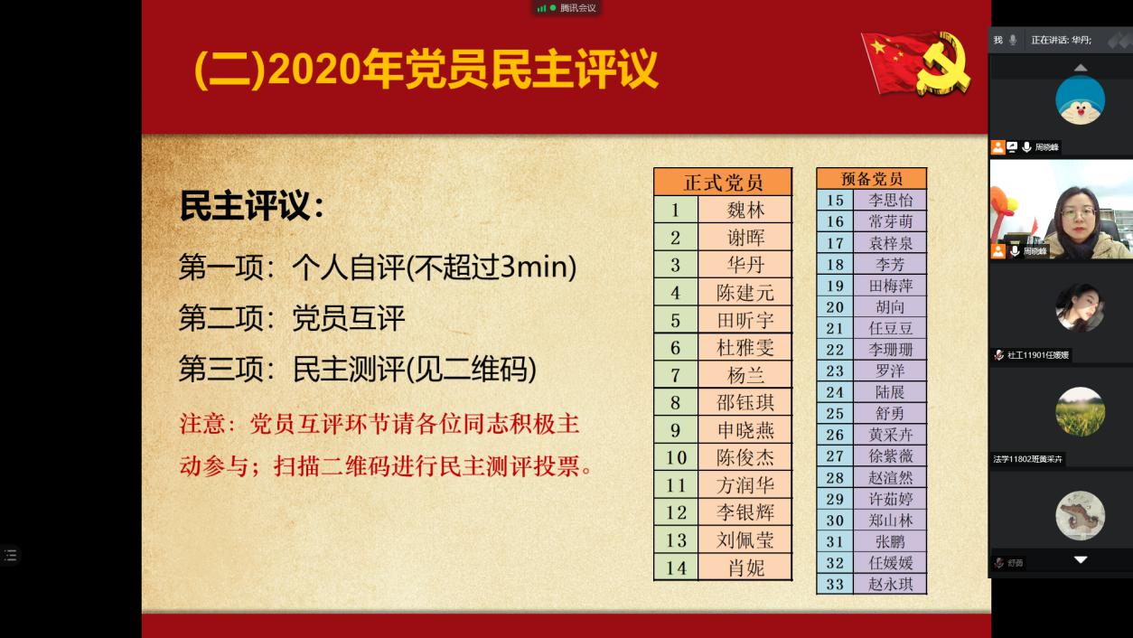 1月6日下午两点半,本科生支部在腾讯会议上召开2020年组织生活会和民主评议党员暨12月主题党日活动,支部书记周晓峰主持会议。