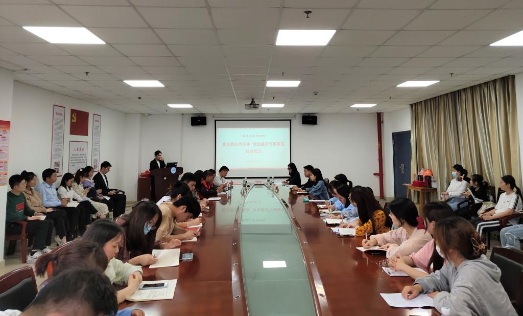5月27日晚,我院在文科大楼1110会议室举行了“学生党员下沉寝室”活动的启动仪式,党委书记周胜美、副书记胡红霞、辅导员周晓峰、盛文军及全院学生党员参加。