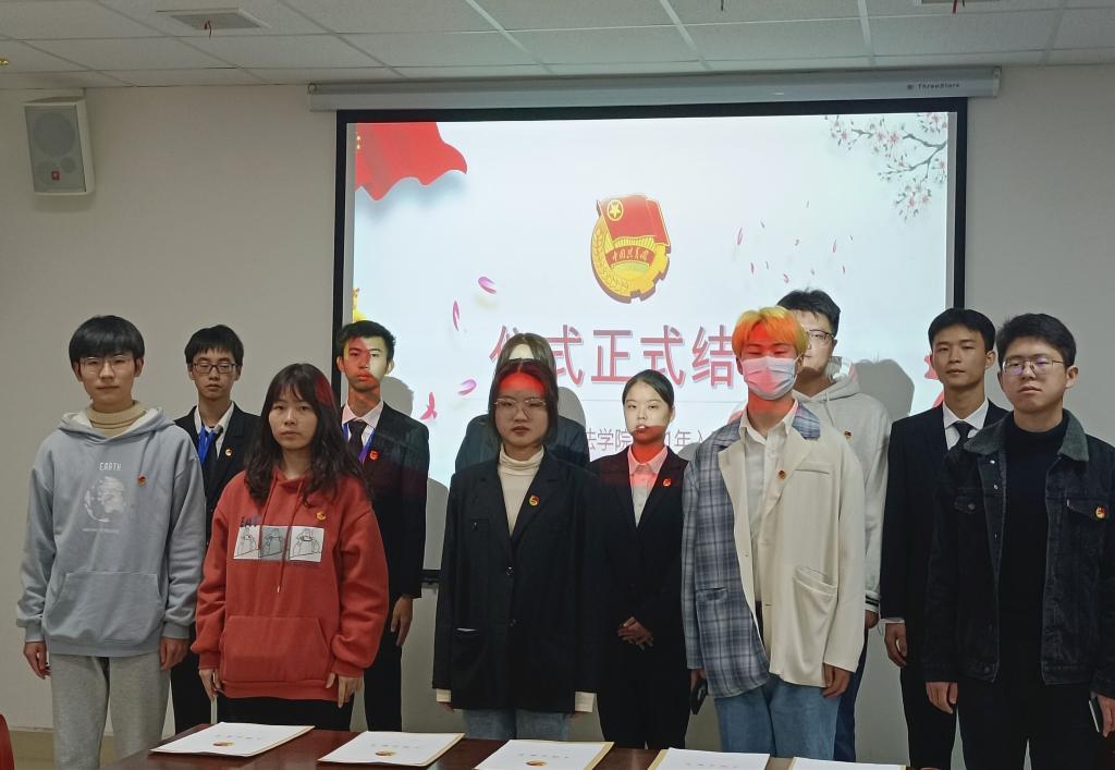 在入团仪式上,由主持人罗浩文同学宣读了2021年度新发展团员名单。由团委副书记田博文为新团员一一授予团徽,并进行庄严的入团宣誓。组织部干事任梓睿在入团仪式上宣读《团章》,使得新团员明确共青团员的权利与义务。随后,陈锦龙作为新团员代表就如何成为更好的团员发表了自己的看法;徐婷婷作为优秀团员代表在入团仪式上发言,表示希望新发展团员在今后的学习生活中坚守初心、不断取得进步。