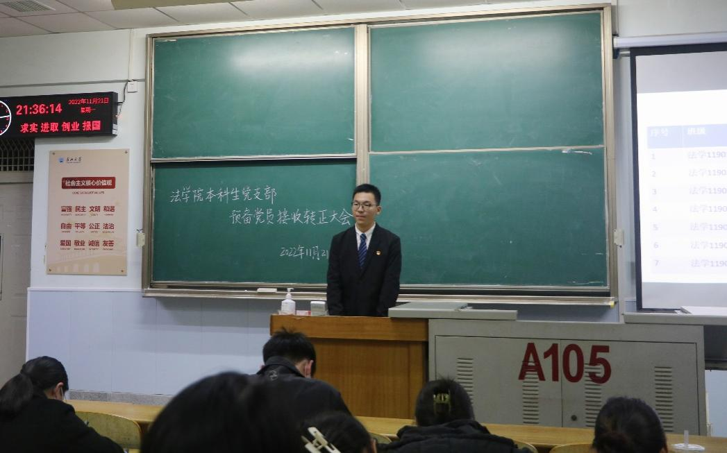(通讯员 邓交)11月21日晚7时,jdb电子中国官方网站本科生党支部于东校区13教A-105教室召开了2022下半年预备党员接收、转正大会、支部支委换届选举大会暨十一月主题党日活动,大会由党支部成员张毅峰同志主持。