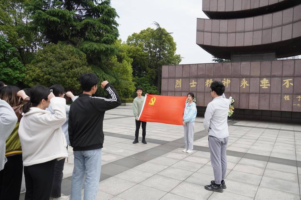 通讯员(黄苏琦 何钰滢)为缅怀革命先烈,传承红色基因,进一步巩固青年党员的政治素养,4月27日下午,jdb电子中国官方网站本科生党支部前往沙市区烈士陵园召开预备党员转正大会暨四月主题党日活动,本次活动由周蕾同志主持,本科生党支部书记雷礼及jdb电子中国官方网站本科生党支部党员参与此次活动。