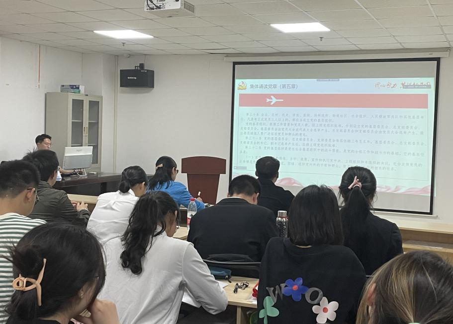 活动伊始,由田博文同志带领全体党员重温入党誓词,前行不忘初心。全体党员通过诵读《党章》第五章“党的基层组织”,明白了党的基层组织是党在社会基层组织中的战斗堡垒,是党的全部工作和战斗力的基础,进一步加强了对党的组织的认识。紧接着,肖芳同志为全体党员讲授微党课《坚守入党初心,坚定理想信念》,强调大学生党员在时代新征程中应当不忘入党初心,践行党员使命,勇于担当作为。