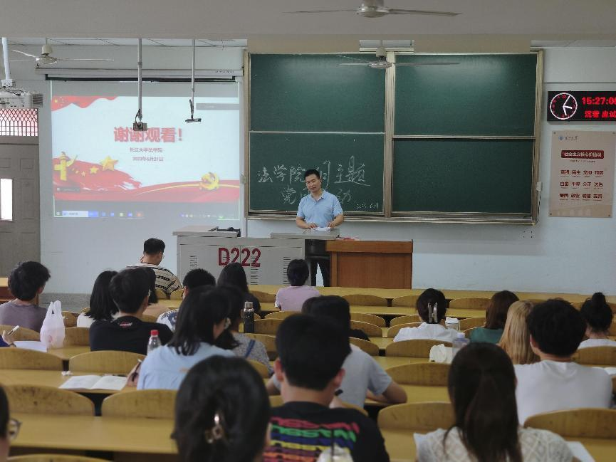 (通讯员王秋红)6月21日下午,jdb电子中国官方网站本科生党支部与研究生党支部在13教D222召开六月主题党日活动,本次活动由范梦瑶同志主持,jdb电子中国官方网站党委书记周胜美、本科生党支部书记雷礼及jdb电子中国官方网站全体学生党员参加。