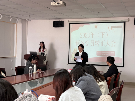 11月23日下午14时,jdb电子中国官方网站研究生党支部于文科大楼1110会议室开展2023年下半年预备党员转正大会,会议由高云肖同志主持,党支部书记盛文军及全体研究生党员参加。