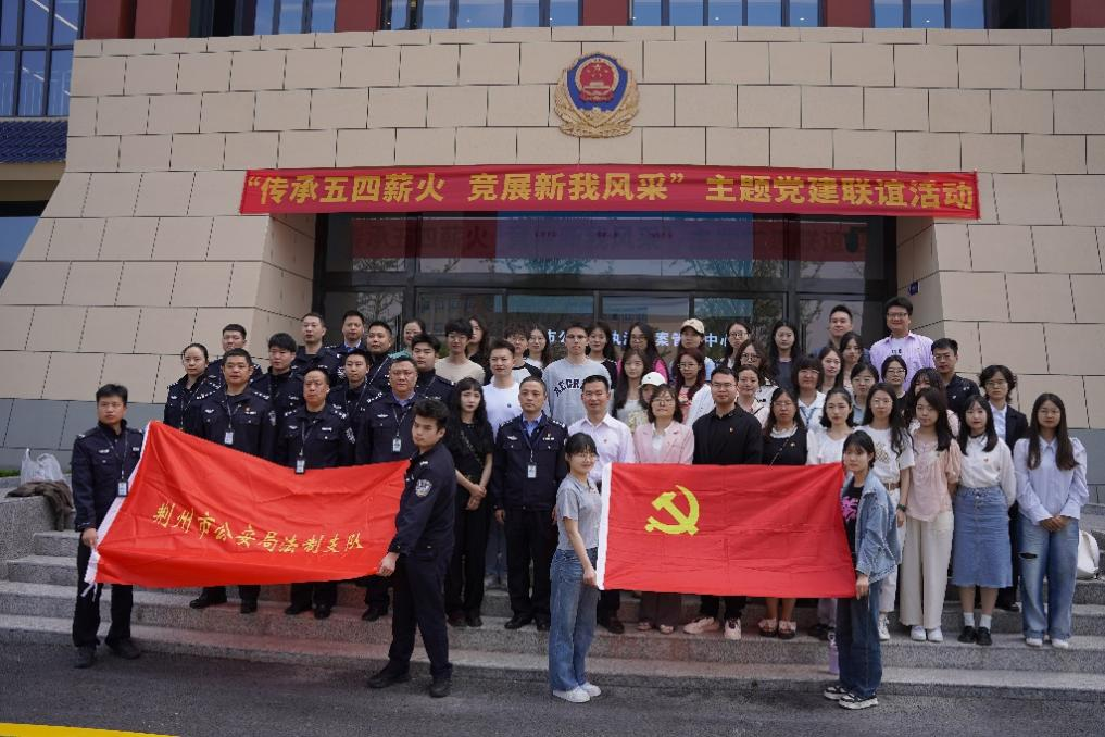 4月26日上午,我院与荆州市法制支队联合开展了“传承五四薪火、竞展新我风采”主题党建活动。法制支队党支部书记张辉、副书记雷中清、青年委员王伟、宣传委员李正军、jdb电子中国官方网站党委书记周胜美、党委副书记严星、硕士生导师杜厚扬、陈欢、辅导员雷礼以及法制支队党员、jdb电子中国官方网站研究生党员参加本次活动。